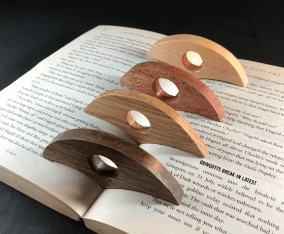 My dad makes these, so I am a little biased when I say that I think they are cool. But really these page holders make it easier to keep your book open with one hand and save you from some pesky hand cramps. Here’s the link to some on Etsy.