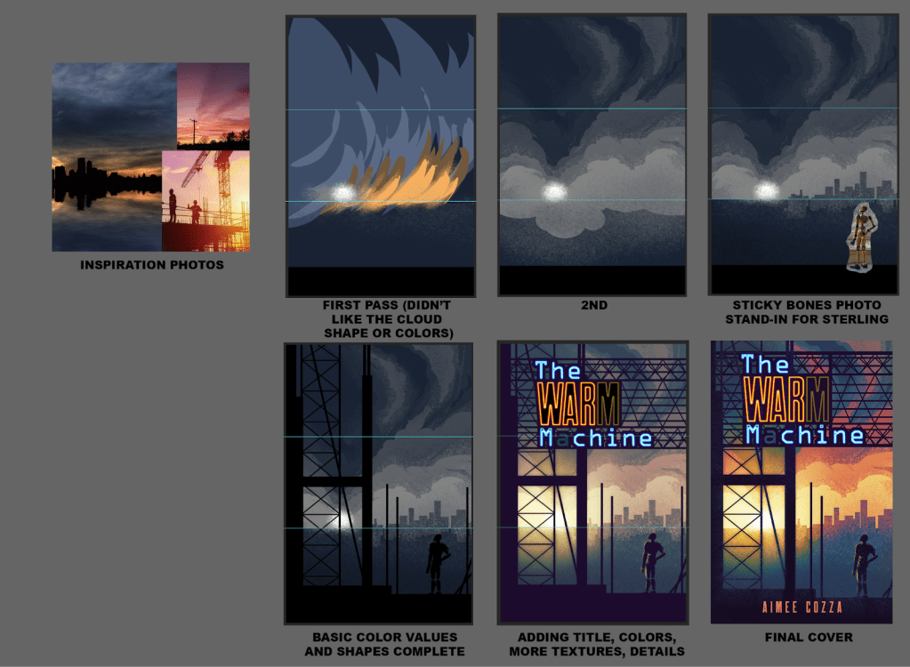This comes with a little backstory, too. Originally, I drew a cover work that was just supposed to be a stand-in as I was trying to figure out whether to keep the book private, try for trad publishing, or self-publish the book. I like making mockup covers for most of my stories, so this is just something I personally enjoy doing. So, I made a cover, it wasn’t a very good one. It was supposed to be the shoulder of the FLC0776 model with the title text printed on the plating there, but I drew it very quickly and didn’t put a whole lot of effort into it.